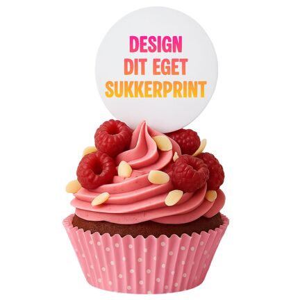 Design dine egne mini cupcake sukkerprint i størrelser fra 2 til 2,9 cm. Perfekt til små cupcakes, muffins og desserter med eget billede, navn, tekst eller logo.