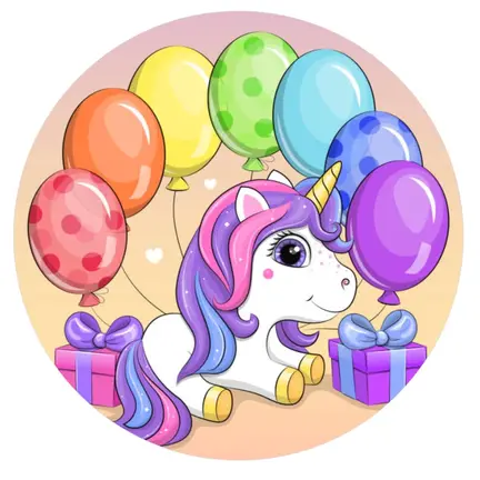Fototårta Tårtbild Enhörning 7, 5 cm med text 15 stk
