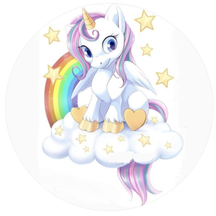 Kageprint Enhjørning 14, 5 cm med tekst 15 stk