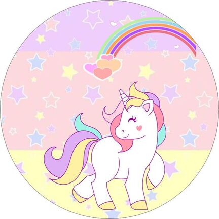 Kageprint Enhjørning 4, 5 cm med tekst 15 stk