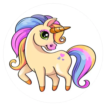 Kageprint Enhjørning 8, 5 cm med tekst 15 stk
