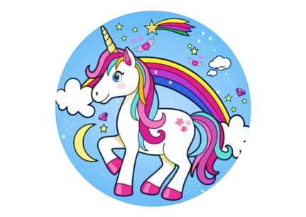 Sukkerprint / kageprint med enhjørning – 19 cm – Vegansk kagepapir (plantefibre)