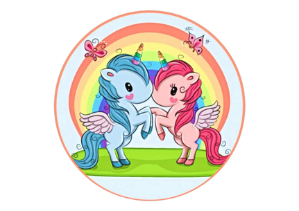 Sukkerprint / kageprint med enhjørning – 5 cm – Sukkerpapir (Fondantpapir)