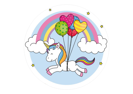 Pynt kagen på få minutter med et sukkerprint/kageprint med enhjørning. Printet er et spiseligt billede og leveres klar til brug.