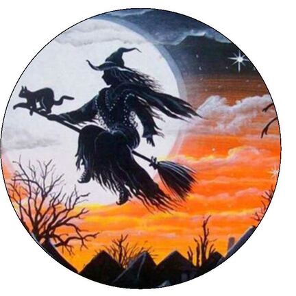 Sukkerprint Halloween Heks 2, ø 19 cm med tekst